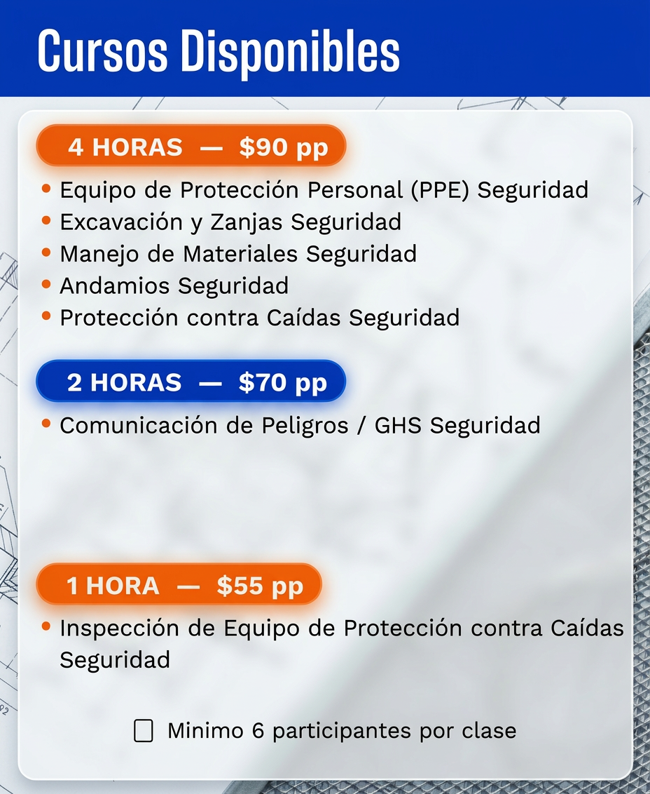 Practical, hands-on training focused on real project conditions, delivered by an authorized instructor. Ideal for supervisors, crew leads, and workers who need to meet jobsite requirements and reduce incidents. Includes materials, evaluation, and completion documentation (card).